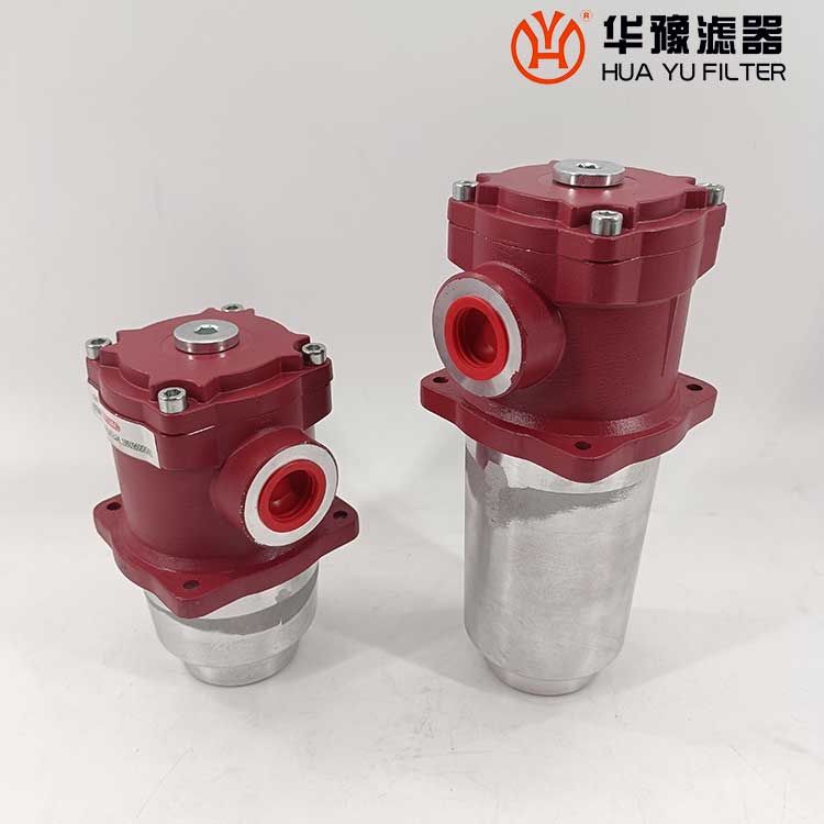 該過濾器的濾芯采用化纖過濾材質(zhì),具有過濾精度高,通油能力大,初始壓力損失小,納污量大等優(yōu)點,并裝有壓差發(fā)訊器及旁通閥。當濾芯堵塞到進出油口壓差為0.35MPa時,便發(fā)出開關(guān)信號,此時應更換濾芯。如果不能馬上停機或無人來更換濾芯,裝在濾芯上部的旁通閥會自動開啟,以保護系統(tǒng)。