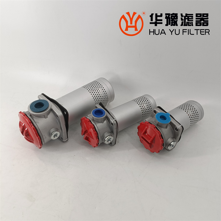 這種過濾器設(shè)有濾芯污染堵塞發(fā)訊器和油路旁通閥,當(dāng)回油壓力達(dá)到0.35MPa時(shí),發(fā)訊器發(fā)出開關(guān)信號或報(bào)警,還可直接從發(fā)訊器的表盤上讀出回油壓力值,以提示操作人員及時(shí)更換濾芯,保證系統(tǒng)油液的清潔度。更換濾芯只需旋開過濾器端蓋即可。當(dāng)回油壓力上升至0.4MPa時(shí),過濾器內(nèi)的旁通閥便自動(dòng)卸荷,以避免回油壓力過高造成整個(gè)系統(tǒng)工作