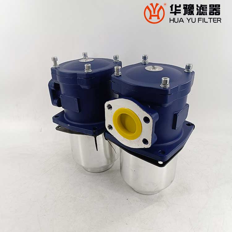該過濾器的濾芯采用化纖過濾材質(zhì),具有過濾精度高,通油能力大,初始壓力損失小,納污量大等優(yōu)點,并裝有壓差發(fā)訊器及旁通閥。當(dāng)濾芯堵塞到進出油口壓差為0.35MPa時,便發(fā)出開關(guān)信號,此時應(yīng)更換濾芯。如果不能馬上停機或無人來更換濾芯,裝在濾芯上部的旁通閥會自動開啟,以保護系統(tǒng)。
