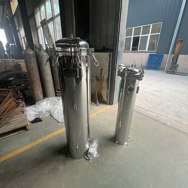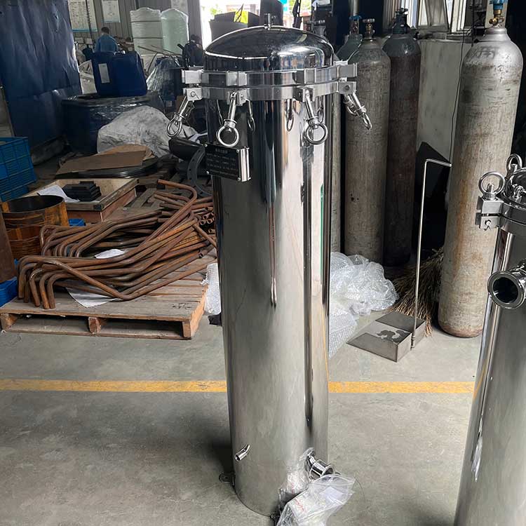 精密過濾裝置(也稱作保安過濾器)大都采用不銹鋼做外殼,內(nèi)部裝過濾濾芯(例如PP棉),主要用在多介質(zhì)預(yù)處理過濾之后,反滲透、超濾等膜過濾設(shè)備之前。用來濾除經(jīng)多介質(zhì)過濾后的細(xì)小物質(zhì)(例如微小的石英沙,活性炭顆粒等),以確保水質(zhì)過濾精度及保護(hù)膜過濾元件不受大顆粒物質(zhì)的損壞。精密過濾裝置內(nèi)裝的過濾濾芯精度等級可分為0.5μs,1μs,5μs,10μs等,根據(jù)不同的使用場合選用不同的過濾精度,以保證后出水精度及保證后級膜元件的安全。